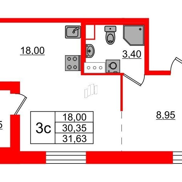 1 комн. кв., 30.35 м²ЖК «Бионика Заповедная» — проект высокого комфорт-класса в Приморском районе в ...