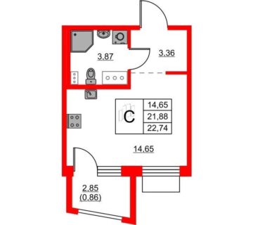 2 комн. кв., 63.97 м², №738, этаж 17/18